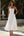 Une ligne blanche à volants demi-manches col carré longue robe de graduation