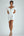 Robe moulante moulante en satin blanc à col en V et manches courtes