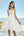 Petite robe blanche trapèze en tulle froncé à bretelles spaghetti