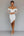 Robe de cocktail blanche moulante à bretelles spaghetti avec volants