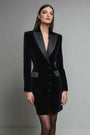 Robe blazer courte noire à revers crantés à simple boutonnage