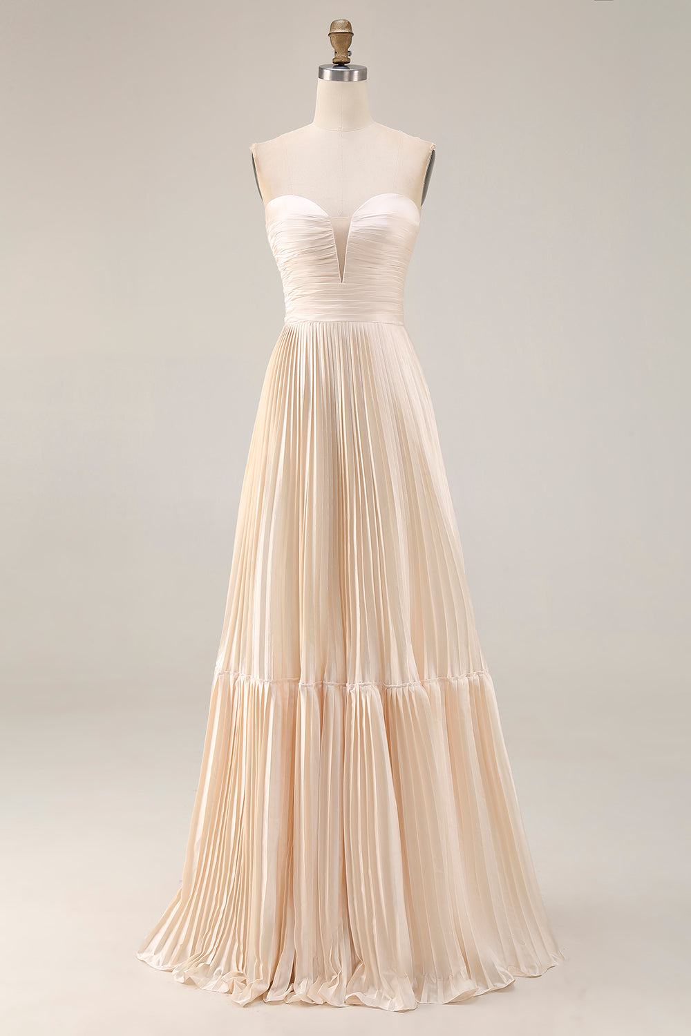 Robe longue de mariage plissée à la ligne Champagne