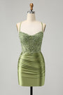 Robe de soirée fendue à bretelles spaghetti sirène sauge avec dos à lacets