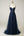 Robe de soirée bleu marine sans bretelles avec décolleté en cœur et perles