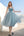 Robe trapèze en tulle bleu gris et col en V