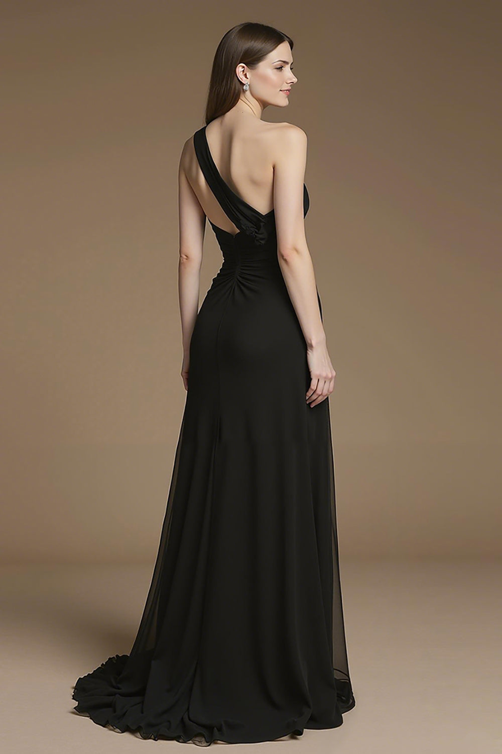 Noir A Line One Shoulder Long Noir Tie Dress avec Plume