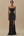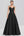 Robe formelle longue noire à bretelles spaghetti trapèze froncée