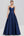 Robe longue formelle à col rond sirène bleu marine avec volants