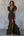 Robe formelle trapèze haut-bas en organza noir avec fente à volants