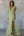 Robe mi-formelle mi-formelle mi-longue à paillettes grises et vertes scintillantes à volants