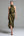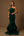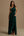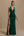 Robe longue de fête plissée dos nu vert foncé avec volants