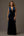 Robe longue formelle à paillettes fourreau noir et or scintillant avec noeud