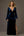 Robe longue formelle en mousseline de soie bleu marine à col en V