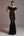 Robe longue formelle à manches longues en velours fourreau noir à col en V