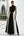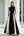 Élégante robe longue formelle trapèze noire et blanche à col haut