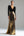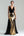 Robe longue formelle en velours à bretelles spaghetti sirène dorées et noires