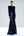 Robe longue formelle à épaules dénudées fourreau bleu marine avec nœud