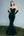 Robe longue de soirée des Fêtes en velours vert foncé à col en V