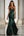 Robe de bal longue en satin vert foncé à bretelles spaghetti