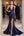 Robe de gala à col en V froncé sirène bleu marine avec fente
