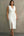 Robe formelle midi blanche blanche en satin à col en V grande taille avec ceinture