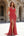 Robe longue de bal de bal en sirène aux perles rouges avec fente