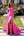 Robe de bal longue sans bretelles imprimée en fuchsia A Line avec nœud