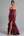 Robe de soirée sirène en satin à col en V rouge foncé avec fente