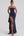 Robe de bal longue en satin noir fourreau à une épaule avec manches