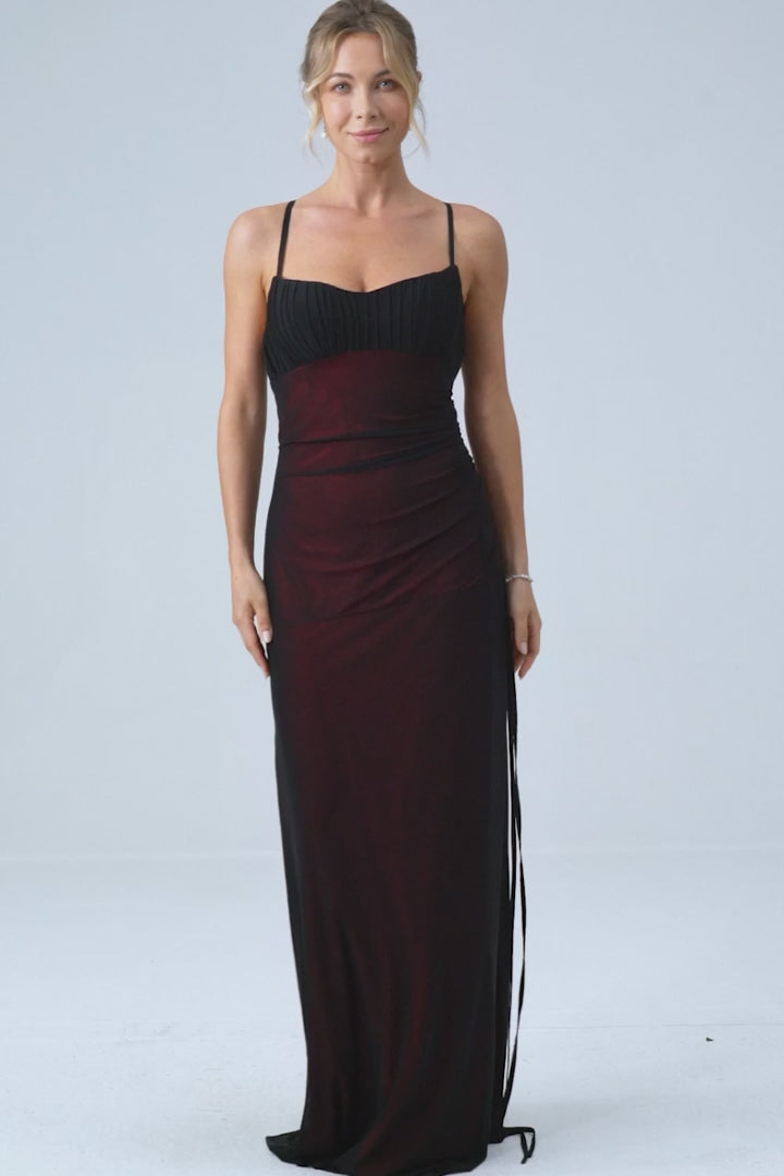 Noir Bleu Spaghetti Bretelles Sirène Plissé Longue Robe de demoiselle d’honneur avec fente