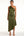 Olive satin froncé spaghetti bretelles longue gaine robe de demoiselle d’honneur