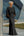 Robe de travail bleue ligne A à manches longues et revers cranté