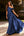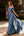Robe longue de travail en satin bleu ciel à col en V avec fente
