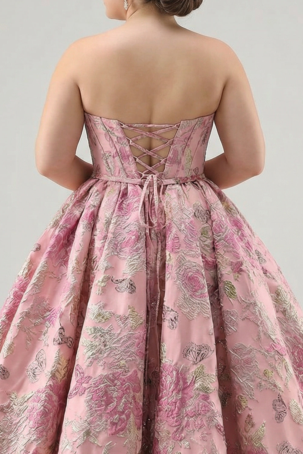 Corset de bal floral rose Princess Bustier Bustier Long grande taille avec dentelle dans le dos