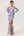 Robe de demoiselle d’honneur en fourreau imprimé bleu blanc à bretelles florales