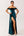 Robe de demoiselle d’honneur à col bénitier gainée florale verte avec fente