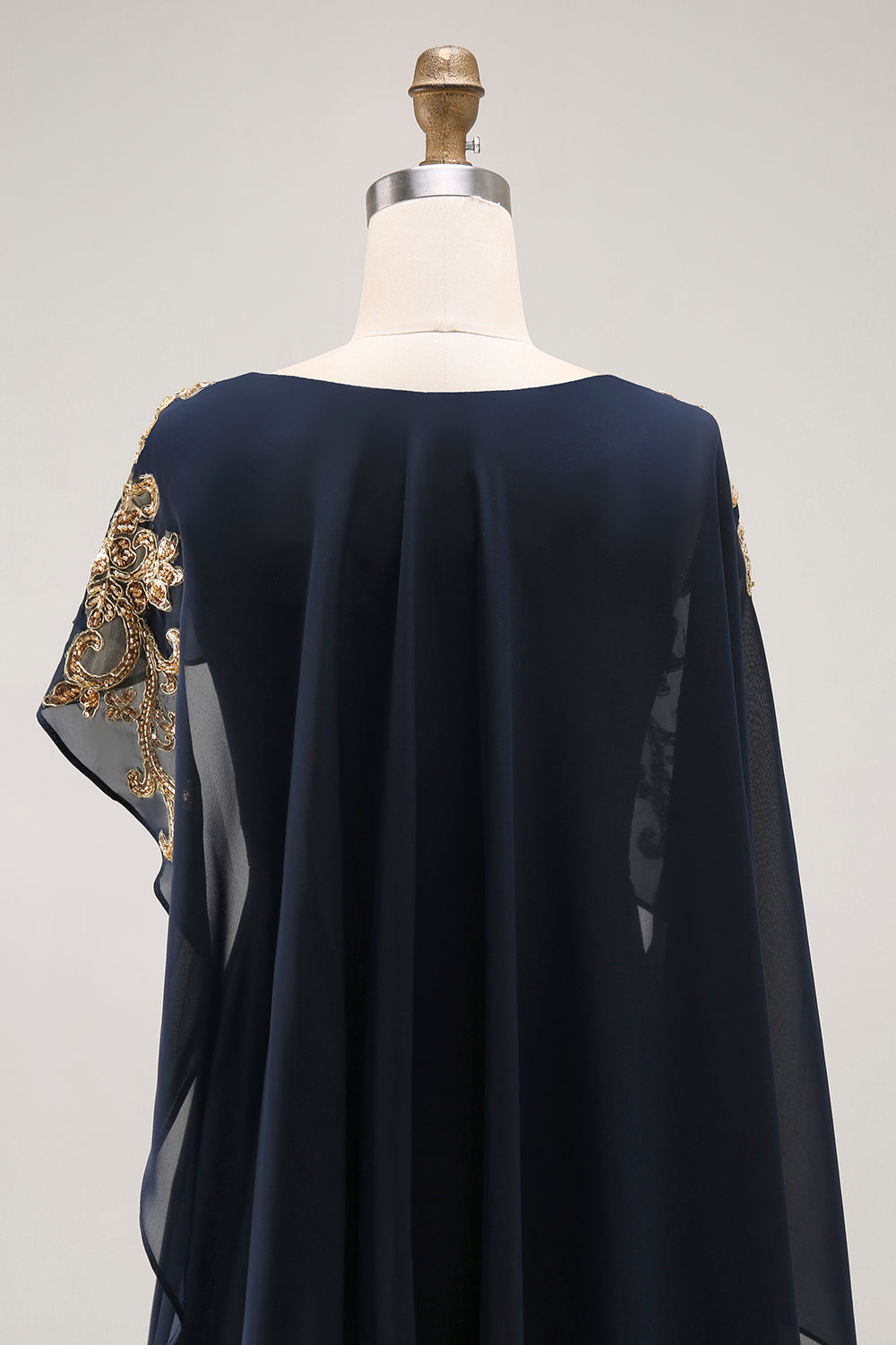 Fourreau Marine Appliqué Mère De La Robe De La Mariée Avec Châle