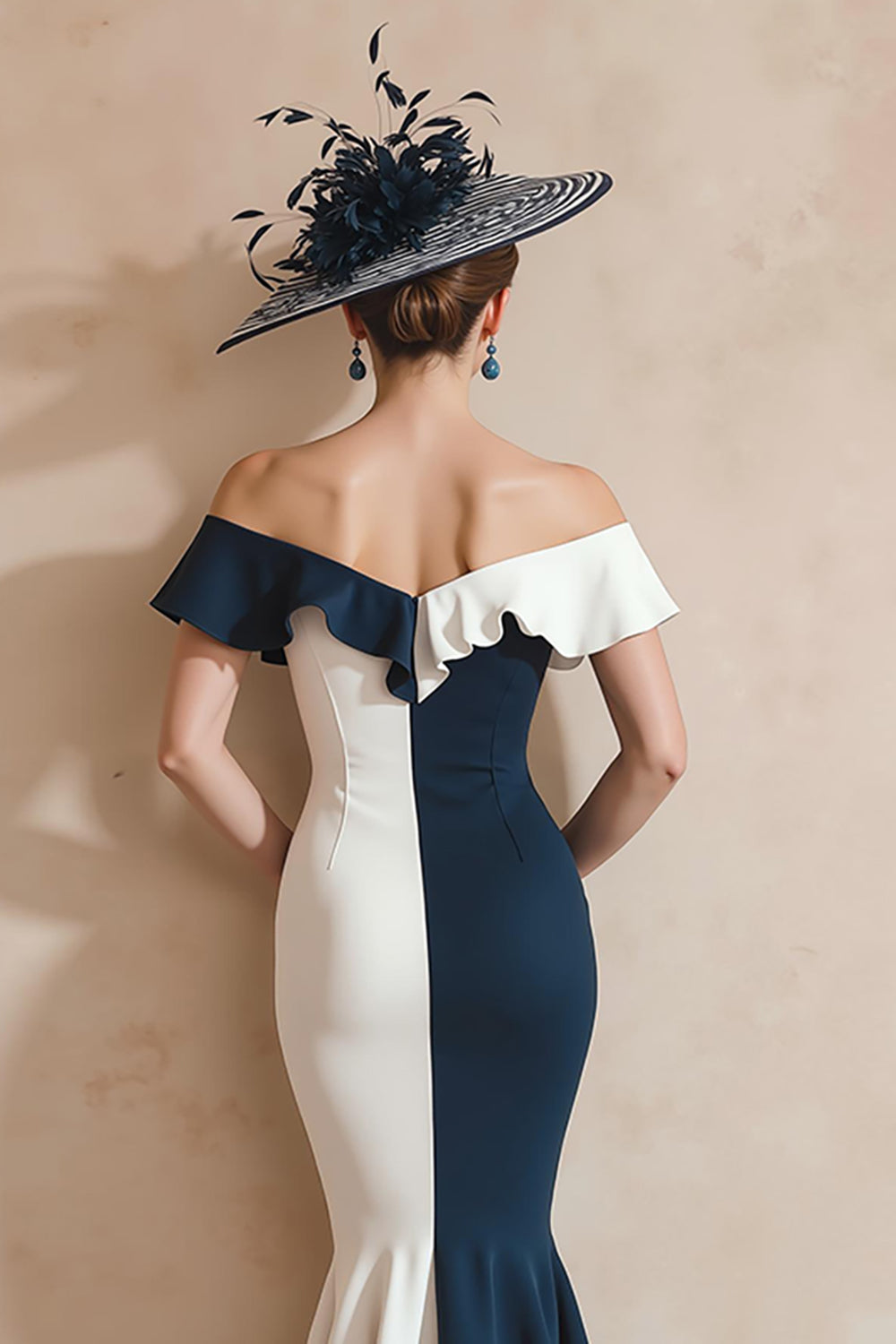 Sirène noire et blanche dénudée épaule volantée longue mère de la mariée robe