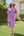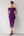 Robe d’invité de mariage midi à col en V froncé violet avec manches flottantes