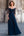 Robe maxi mère de la mariée en dentelle bleu marine sirène col V avec manches