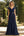 Robe de mère de la mariée à manches courtes longue à col en V perlée bleu marine
