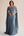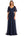 Fourreau bleu marine volanté scoop mousseline de soie longue robe mère de la mariée
