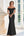 Gris foncé sirène portefeuille manches longues volanté mousseline de soie longue mère de la mariée robe
