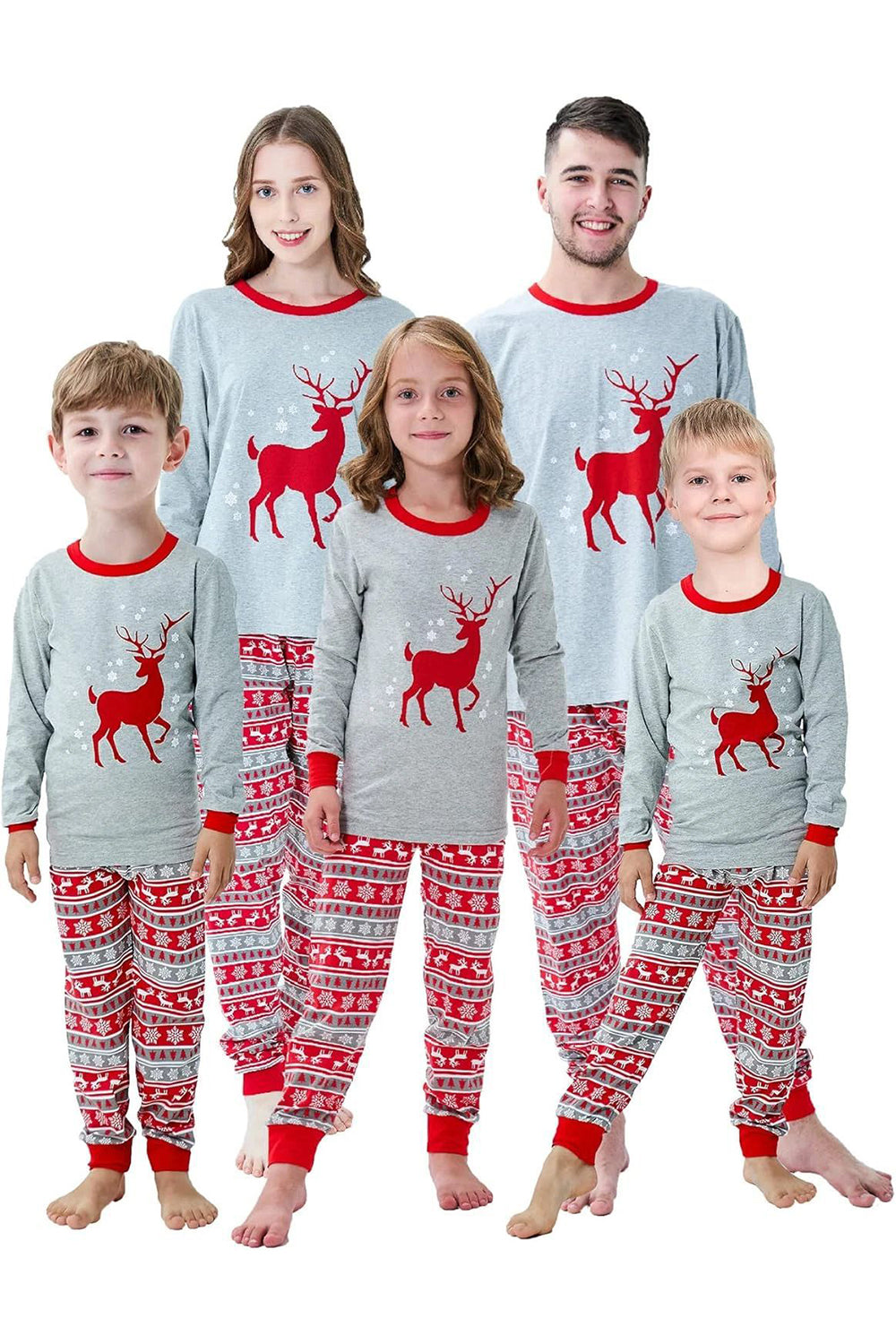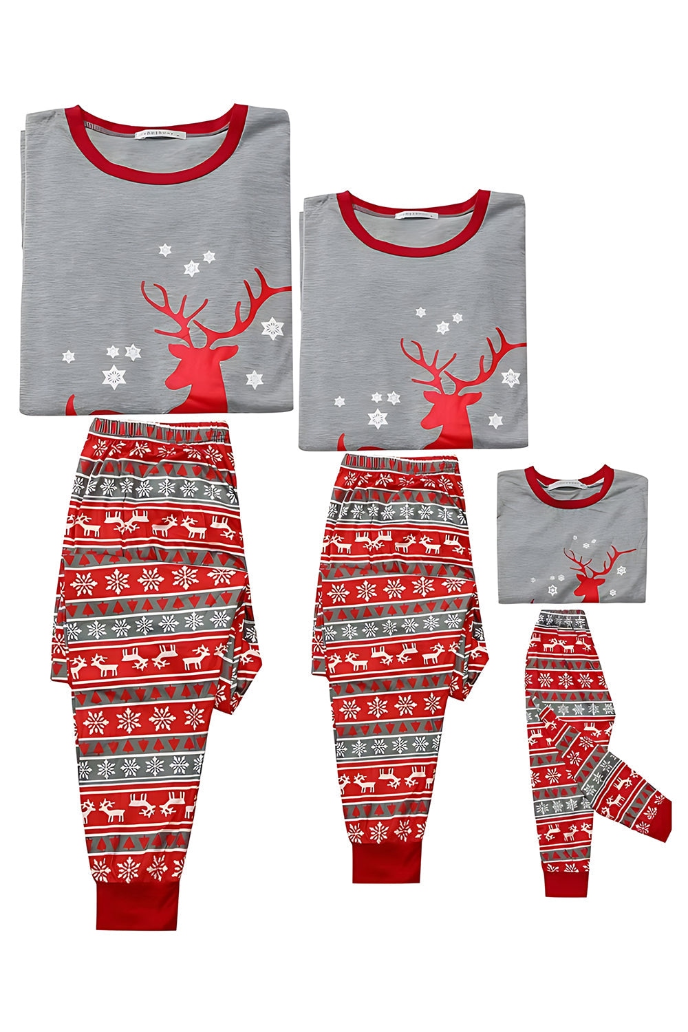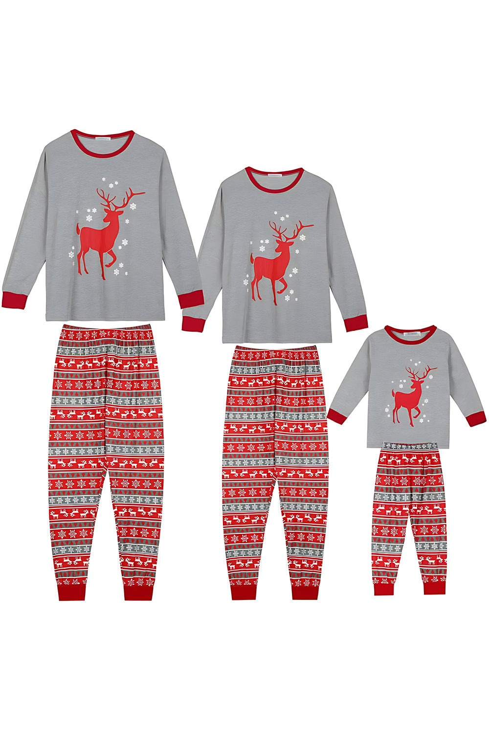 Gris Rayures Rouge Elk Print Noël Famille Pyjama Assorti Ensemble