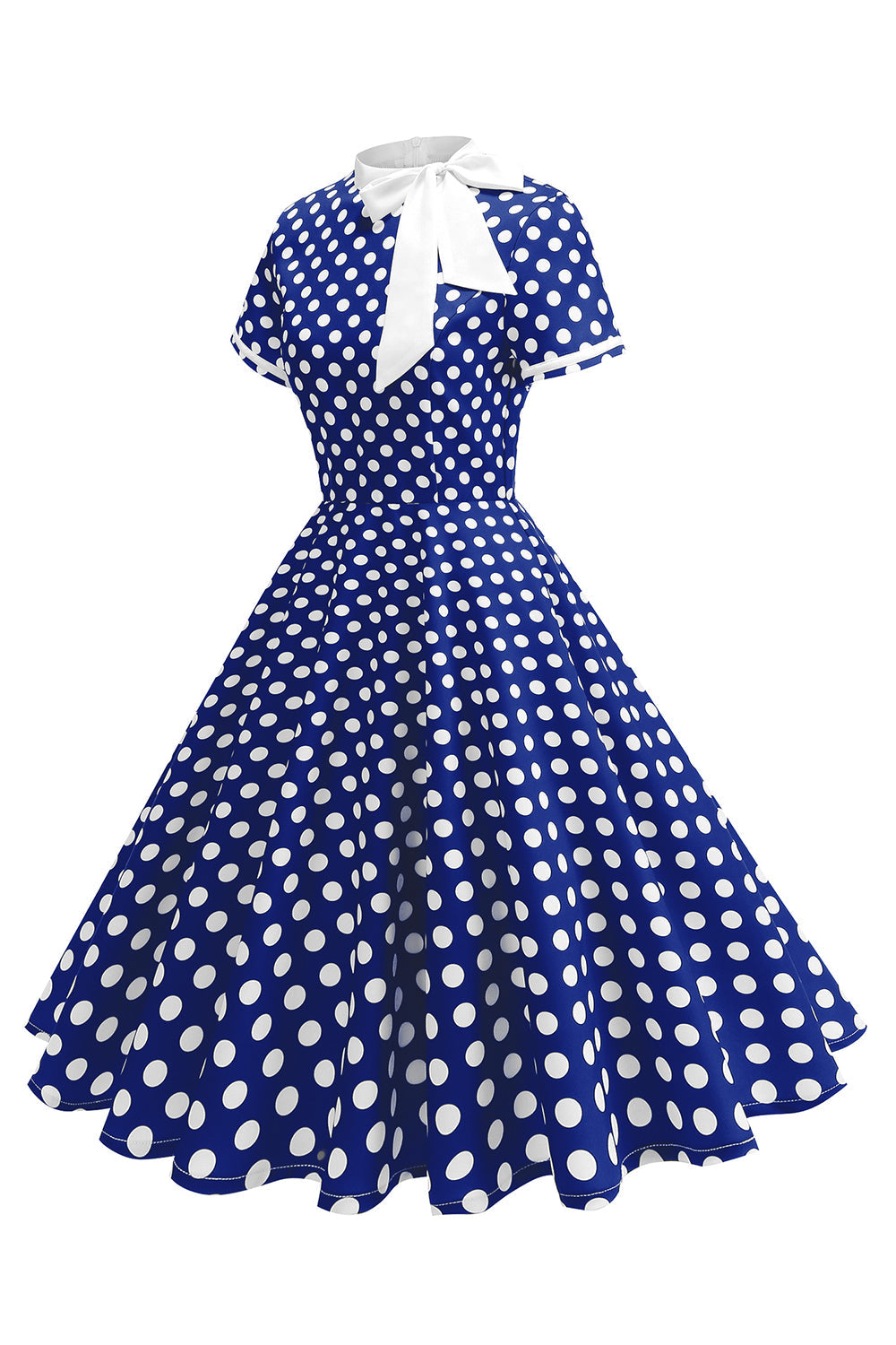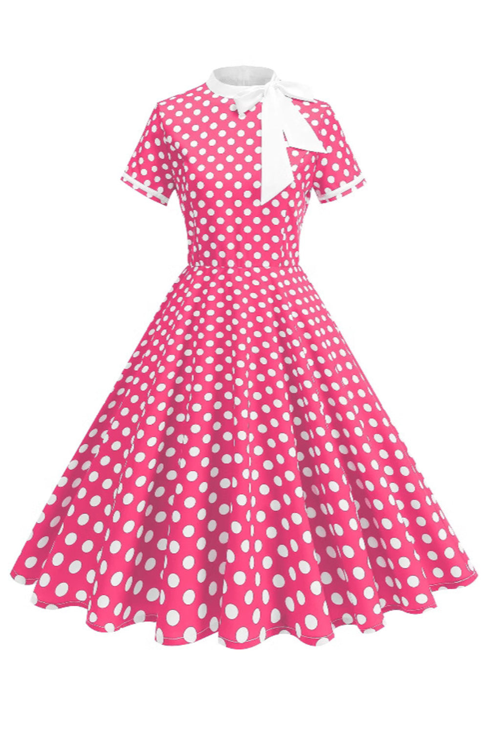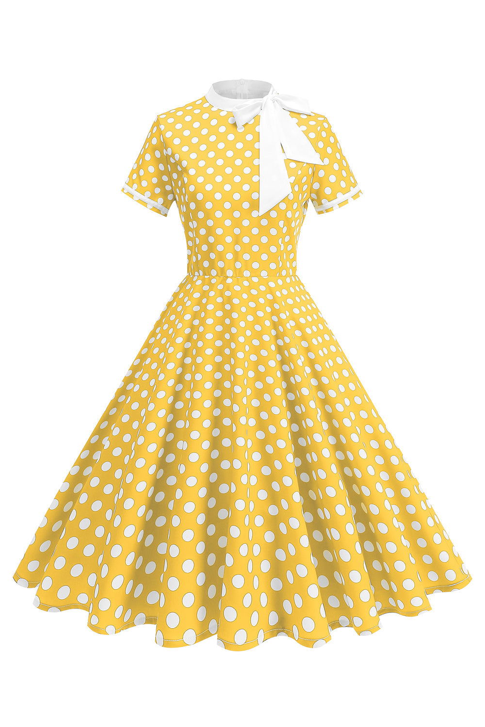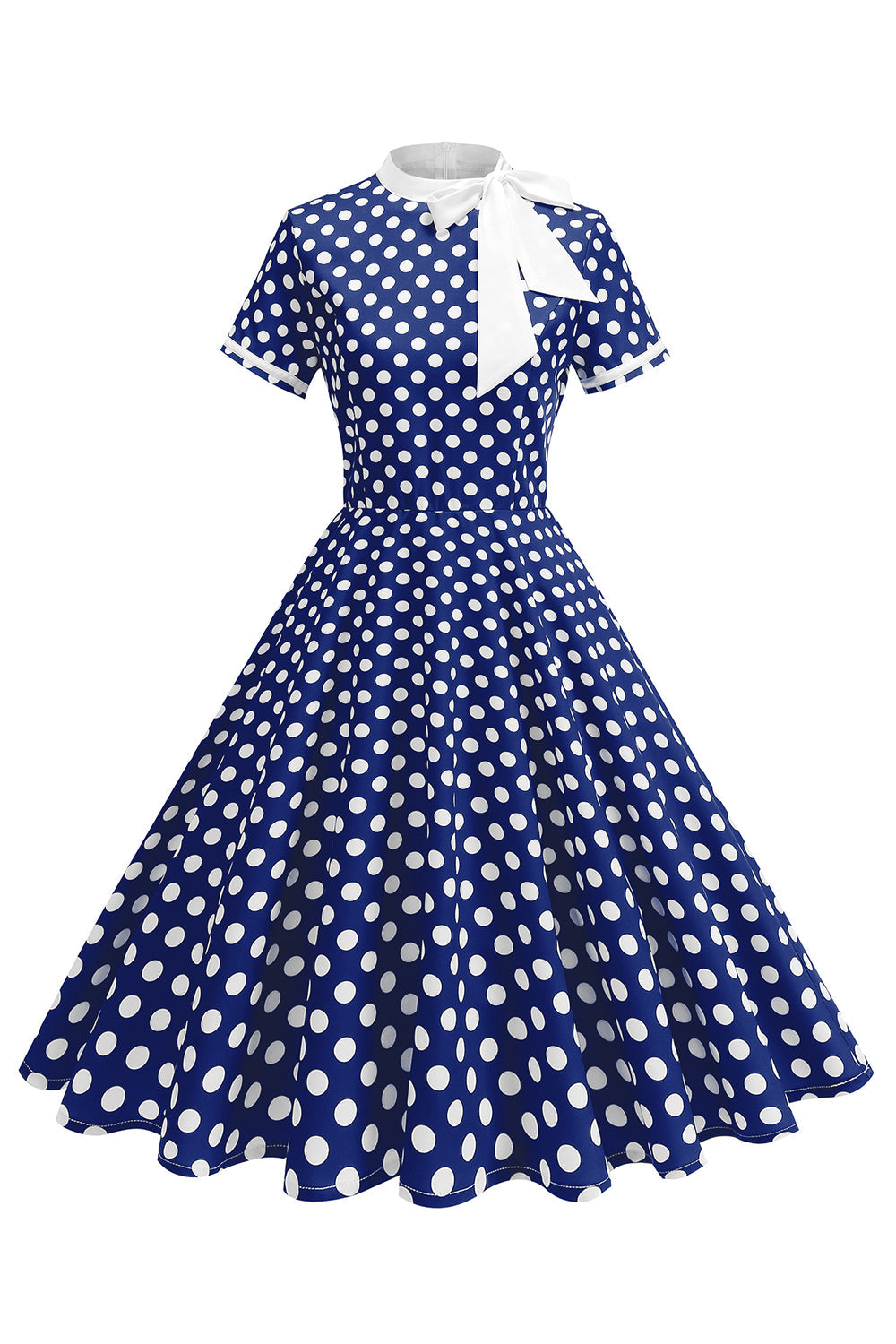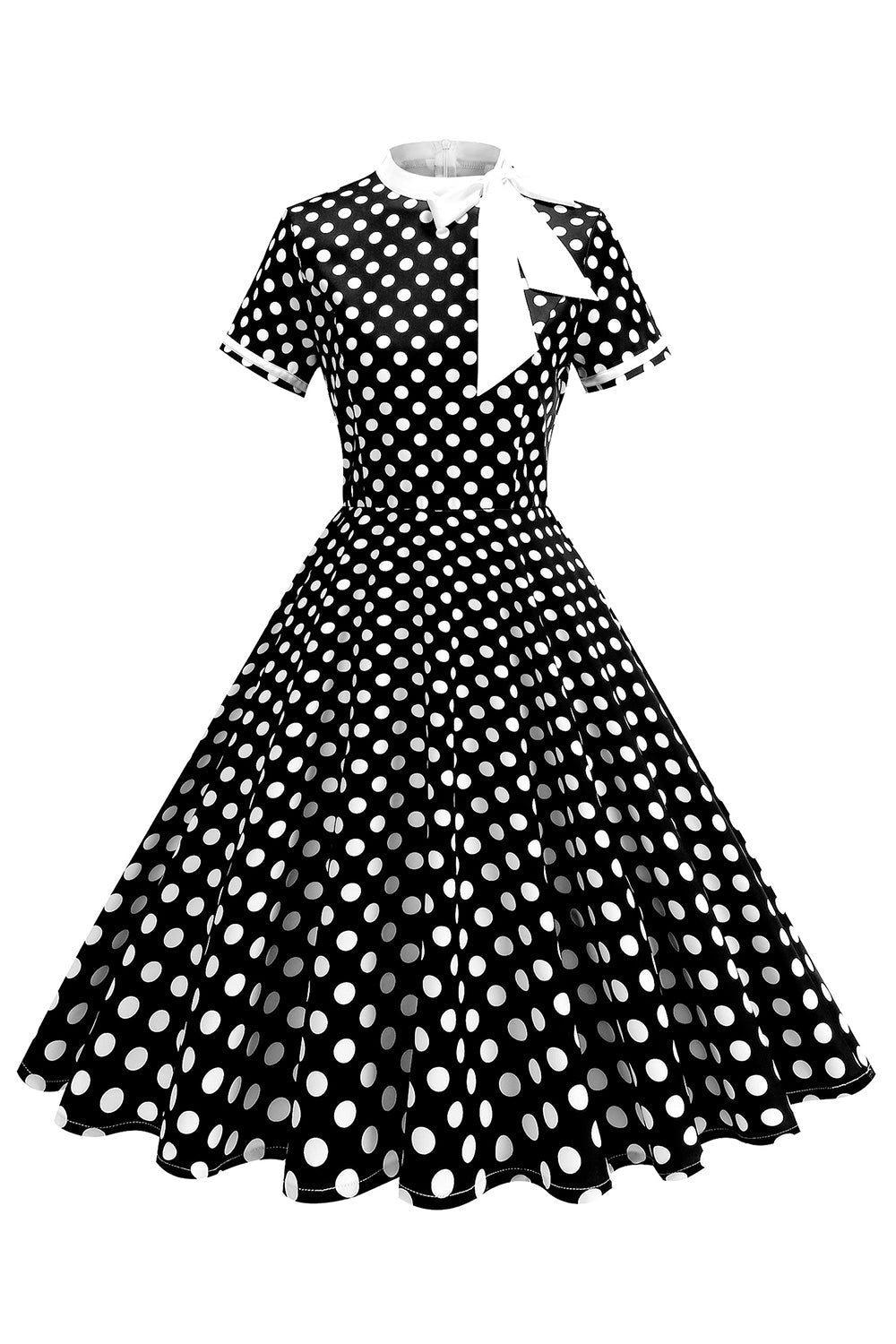 Robe à pois noirs à col haut avec un nœud A Line des années 1950