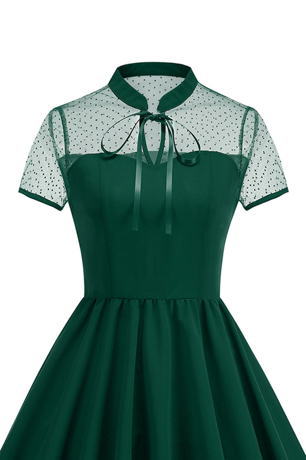 Robe des années 1950 à col haut à pois noirs à pois