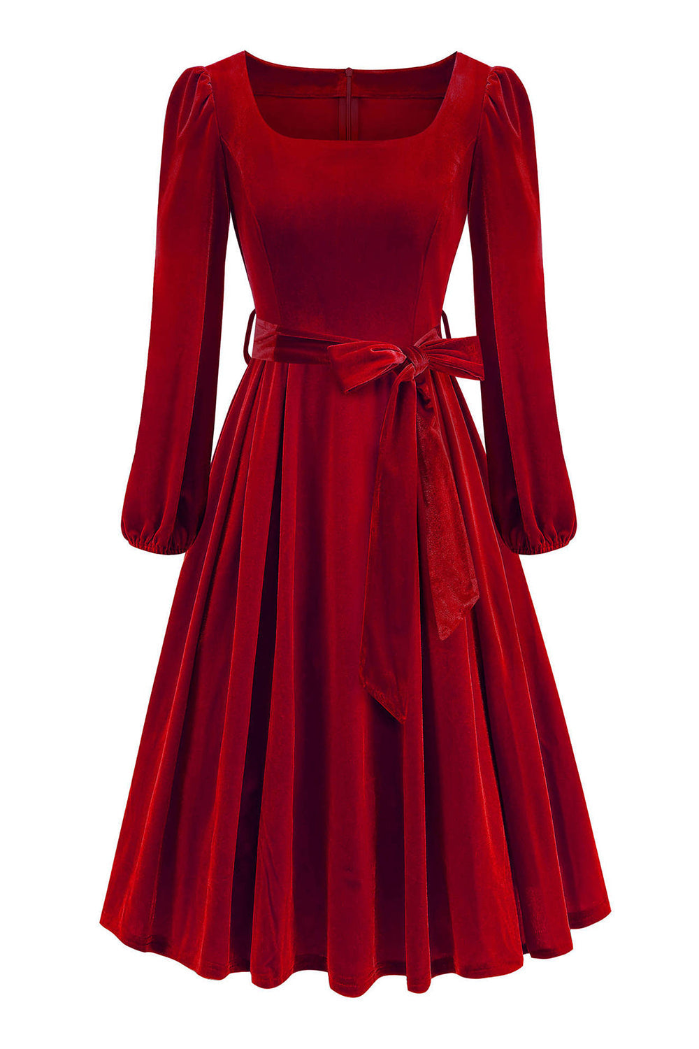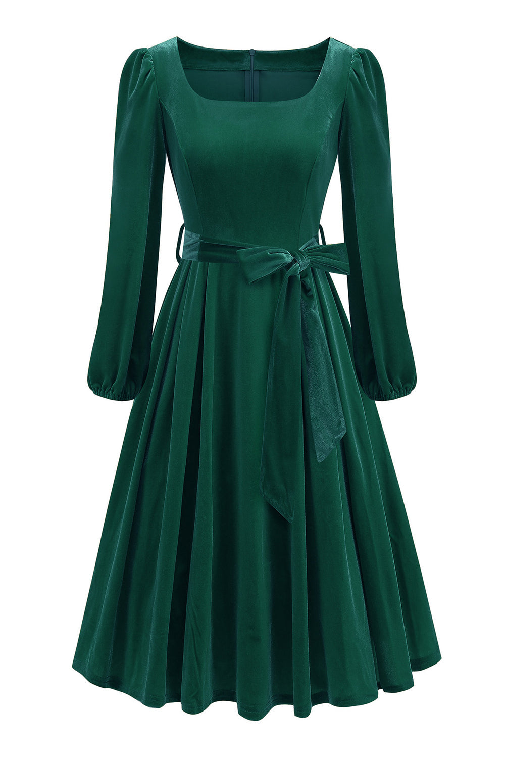 Robe des années 1950 à manches longues vert foncé A Line avec ceinture
