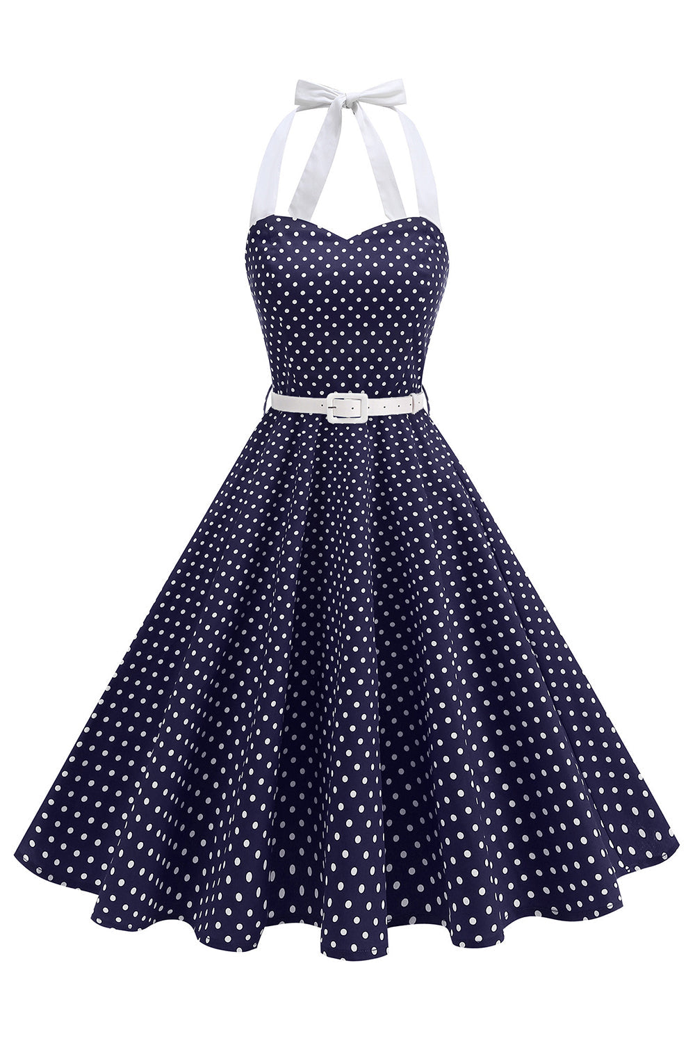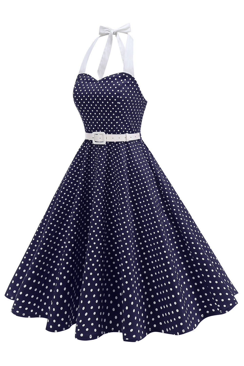 Robe des années 1950 à pois en format Bleu royal A