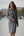 Robe de travail longue en satin gris bleu corbeil trapèze