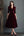 Robe de travail à col en V en velours bordeaux à demi-manches